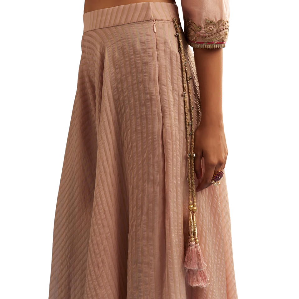 Blush Pink Chanderi Kurta Palazzo Set With Organza Dupatta Wholesale Women Ethnic Apparel OEM Clothing Supplier Custom Outfit
