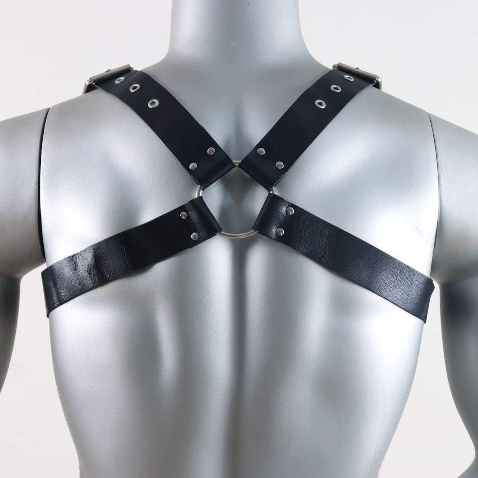 Body Chest Half Harness for Men Black Adjustable Sexy Male Gay Wear Interest Buckles Belt Clubwear Costume PU Leather