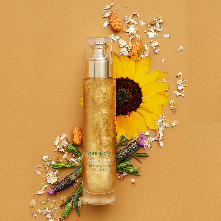 Body Glow Oil Private Label Face and Body Luxury Glitter Liquid Highlighter Bronzer Gold Long Lasting Body Shimmer Oil
