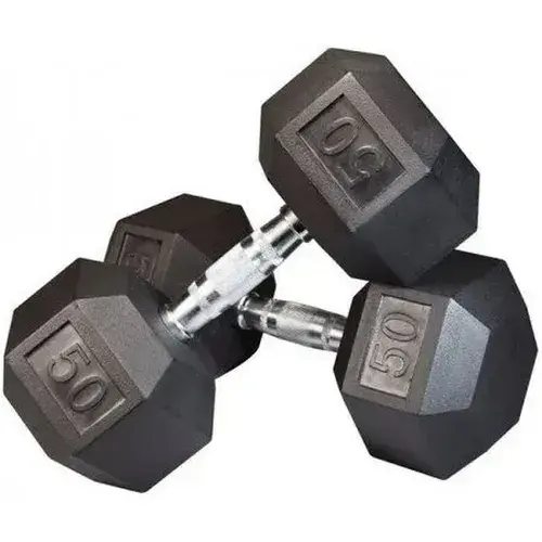 Body Solid SDR50 Hex Dumbbell Pair Custom Logo 50 Lb Iron Weights for Home Exercise Strength Training and Gym Fitness