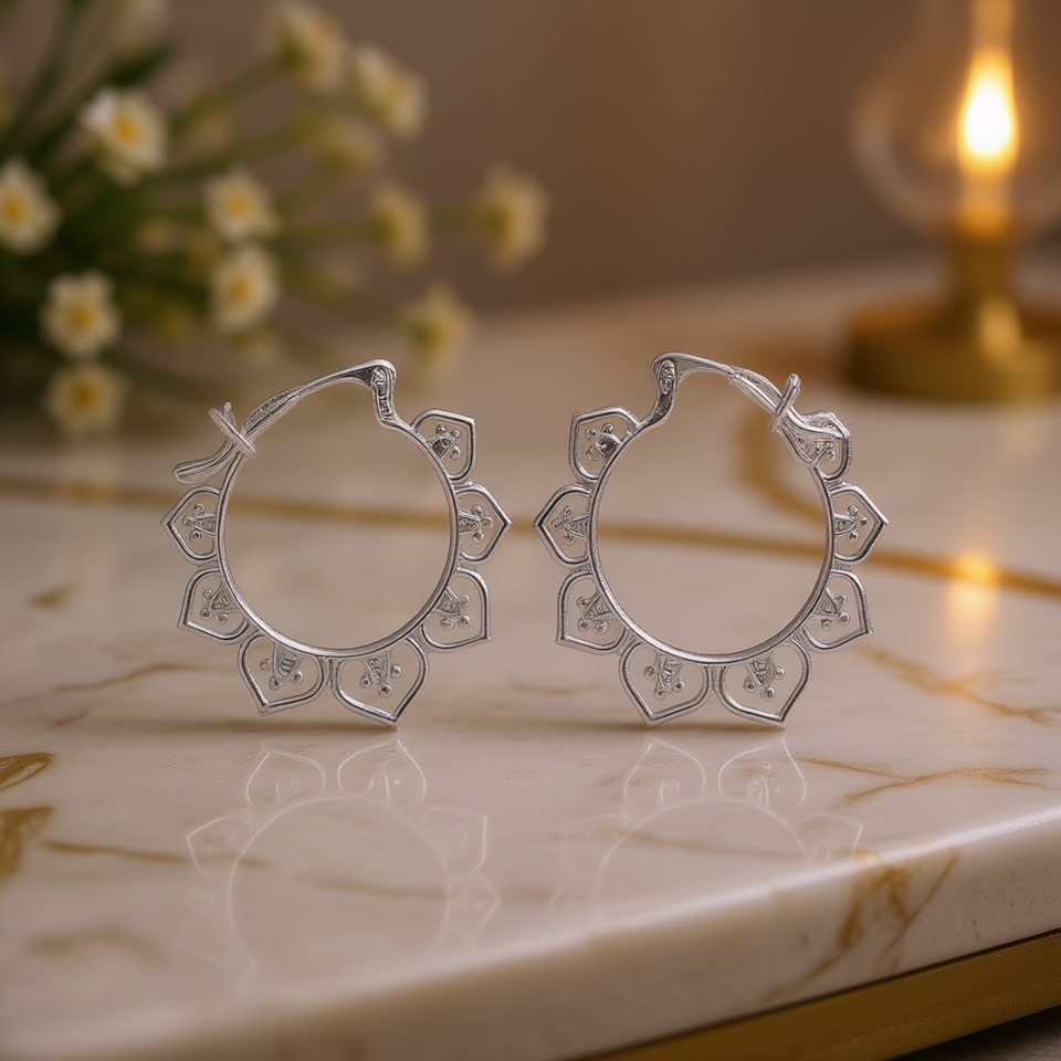 Bohemia 925 Silver Flower Hoop Earrings For Women White Gold Everyday Wear Jewelry