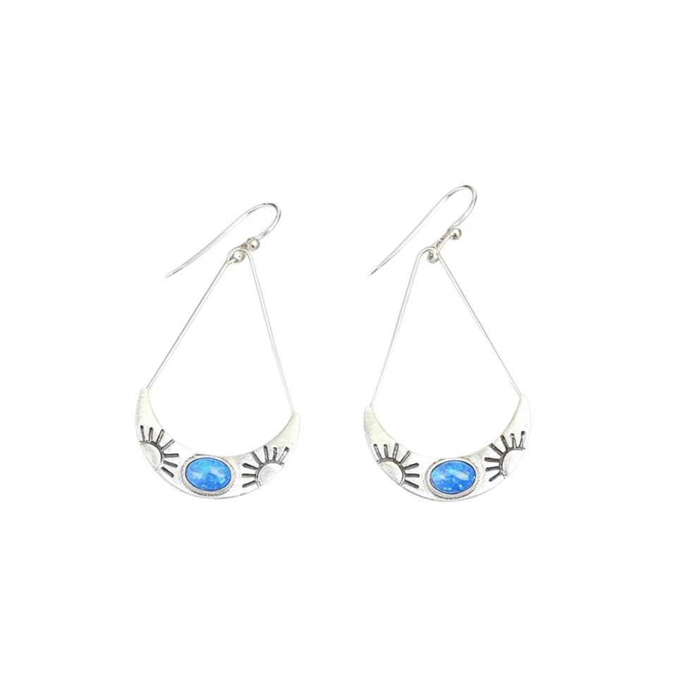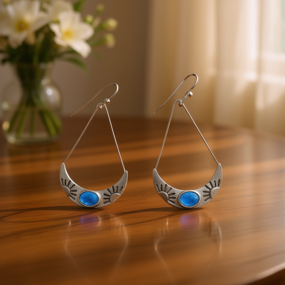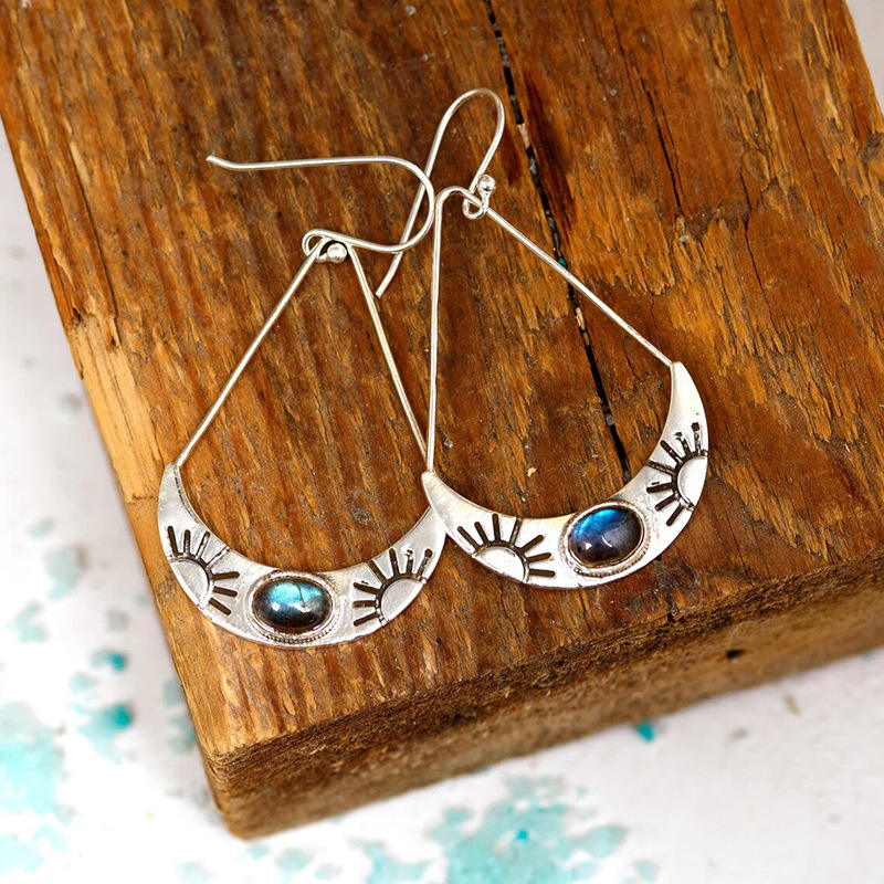 Bohemia 925 Silver Moon Drop Earrings With Lapis Lazuli Bezel Setting For Women Everyday Wear