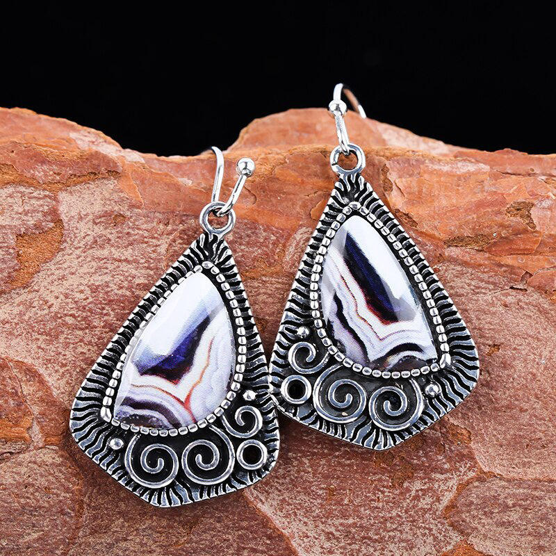 Bohemia Agate Drop Earrings Antique Silver Plated Bezel Setting Women's Party Jewelry Fashion Statement Earrings