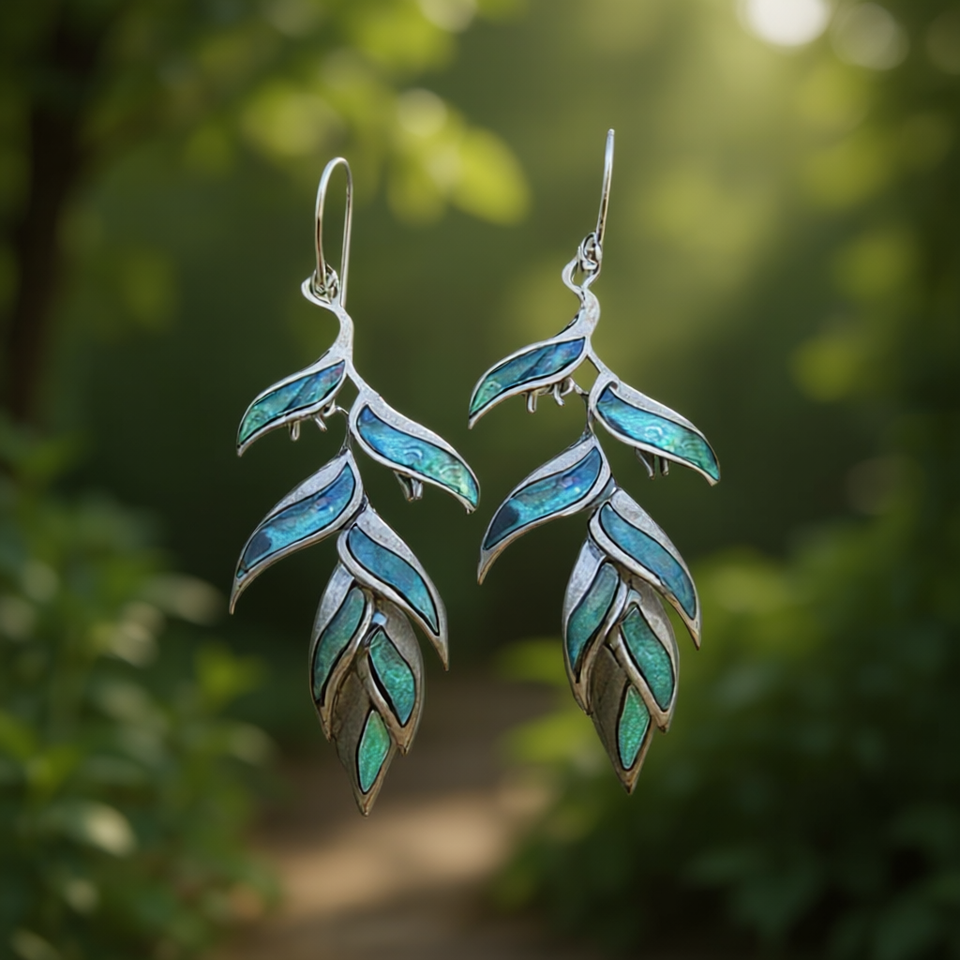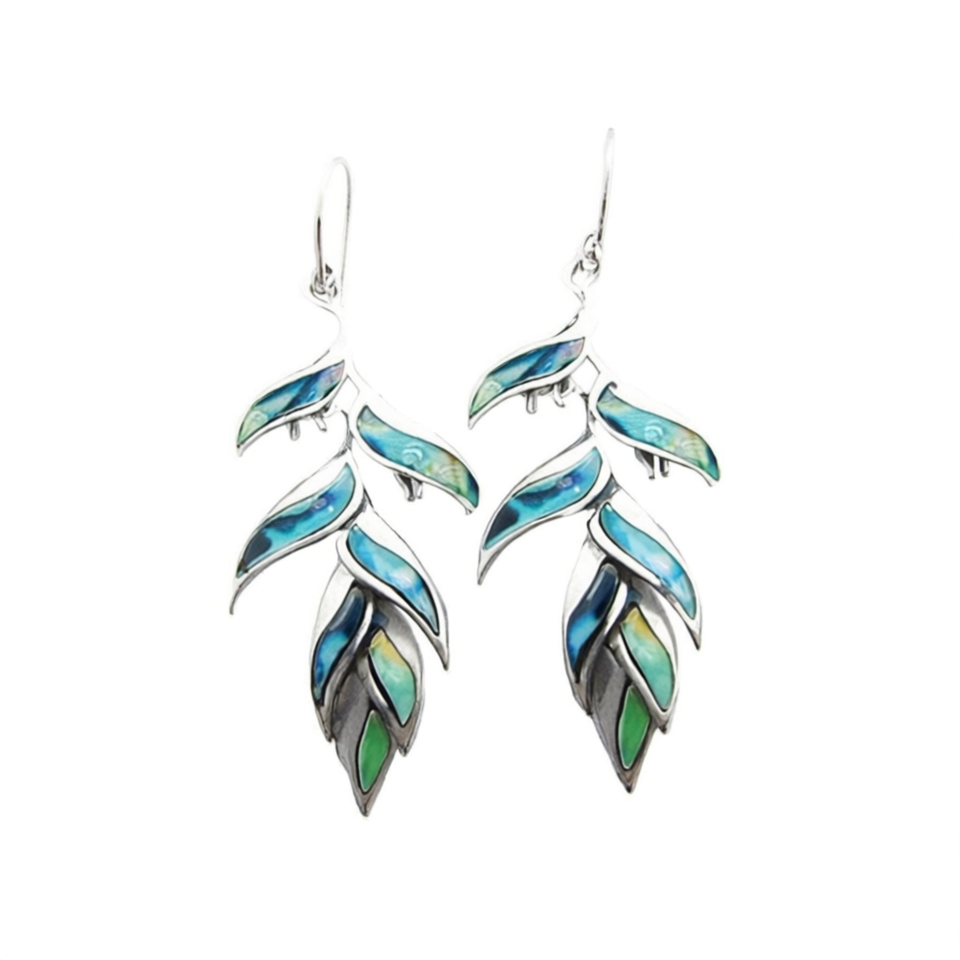 Bohemia Silver Plated Drop Earrings Women's Plant Shape Shell Inlay Bezel Setting Fashion Jewelry For Party