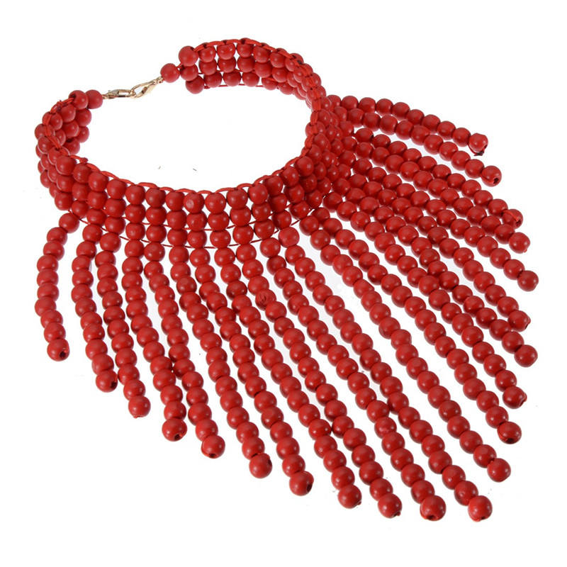Bohemia Wooden Beaded Necklaces for Women Statement Multicolor Beads Long Pendant Tassels Bib Choker Necklace Handmade Jewelry