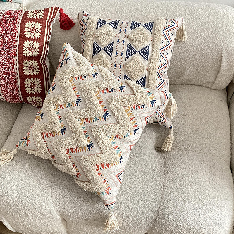 Cuscino stampato in lino con ciuffo in stile floreale bohémien comodino decorativo del divano della casa con Design a forma di animale e croce