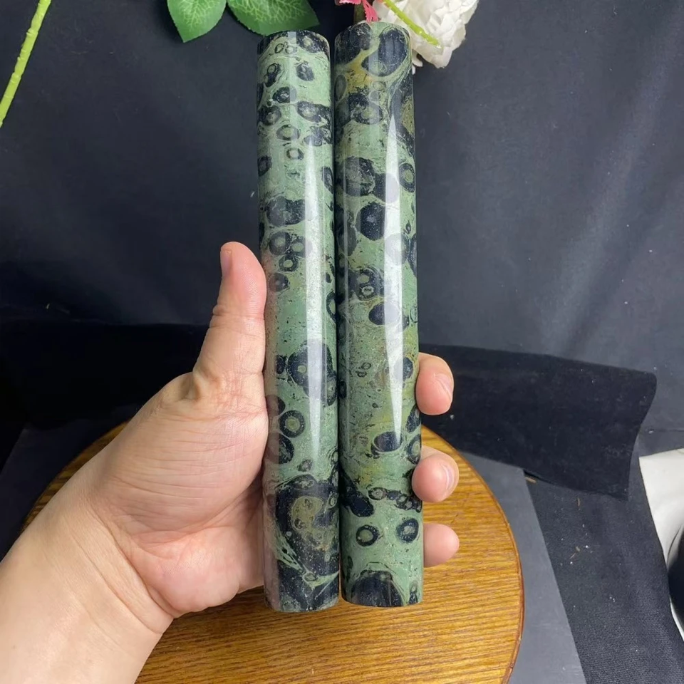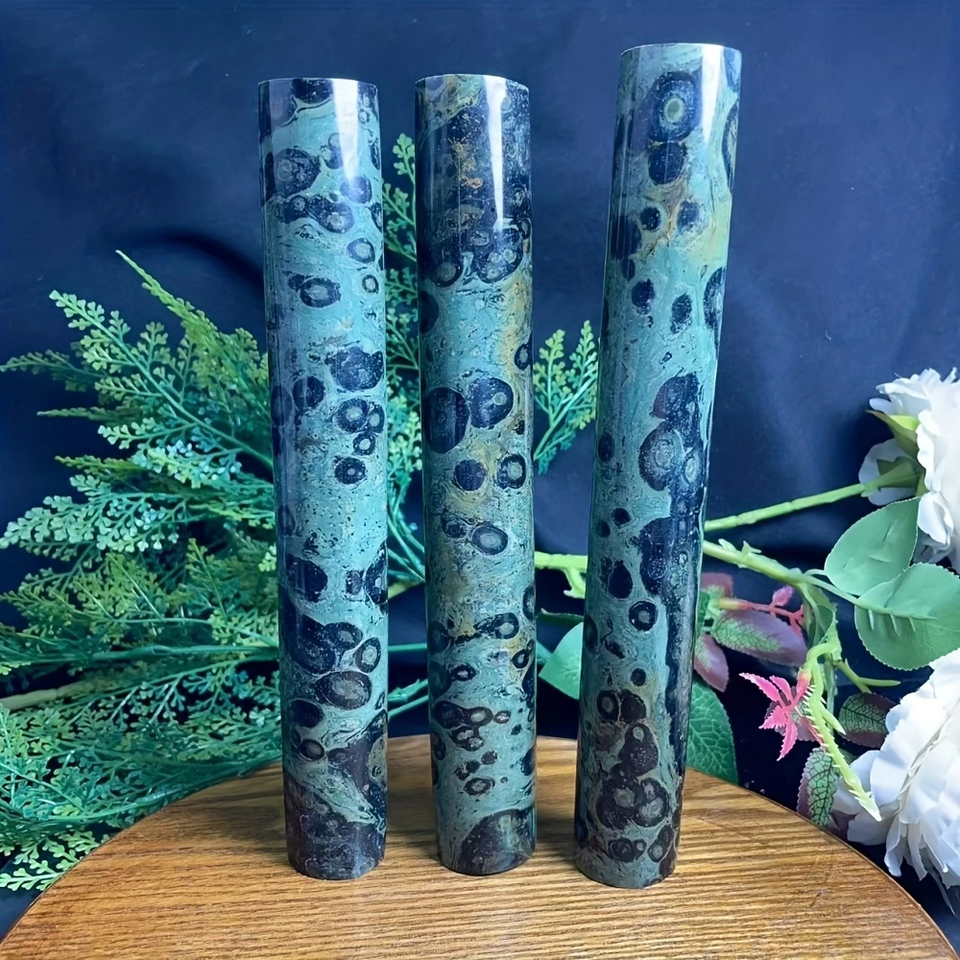 Bohemian Kambaba Jasper Cylinder - Polished Natural Stone with Floral & Abstract Patterns, Green & Black Marbled Design