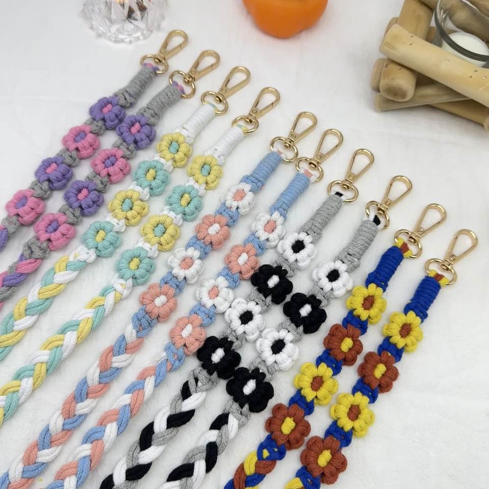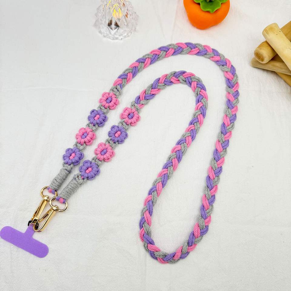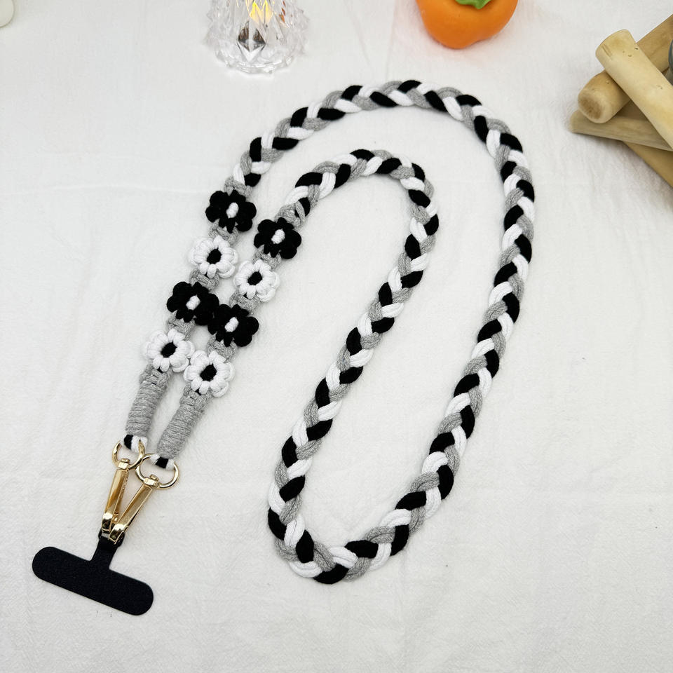 Bohemian Woven Flowers Mobile Phone Lanyard Daisies Flower Diagonal Neck Mobile Phone Chain Crossbody Chain Earphone Bag Key