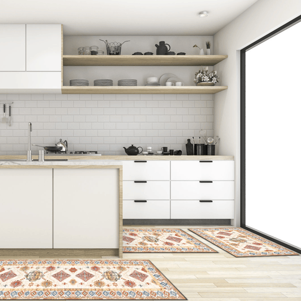 Set di 3 Tappeti da Cucina Boho Antiscivolo, Spessi e Lavabili, con Tappeto Runner e Tappetini Durevoli per Pavimenti da Cucina