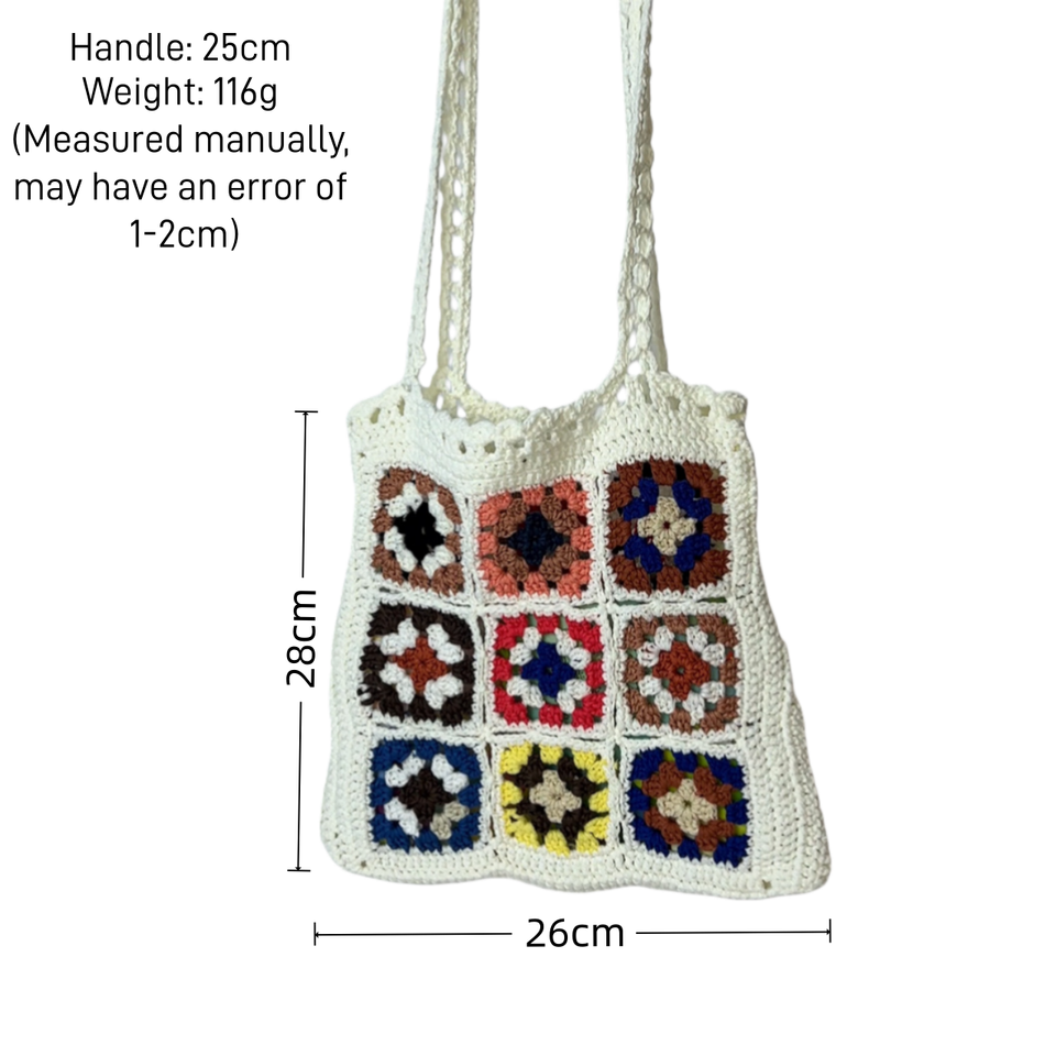 Borsa Tote Boho Chic all'Uncinetto - Design Floreale Multicolore Fatto a Mano con Motivo Granny Square, Borsa a Spalla Artistica per Boutique e Spiaggia