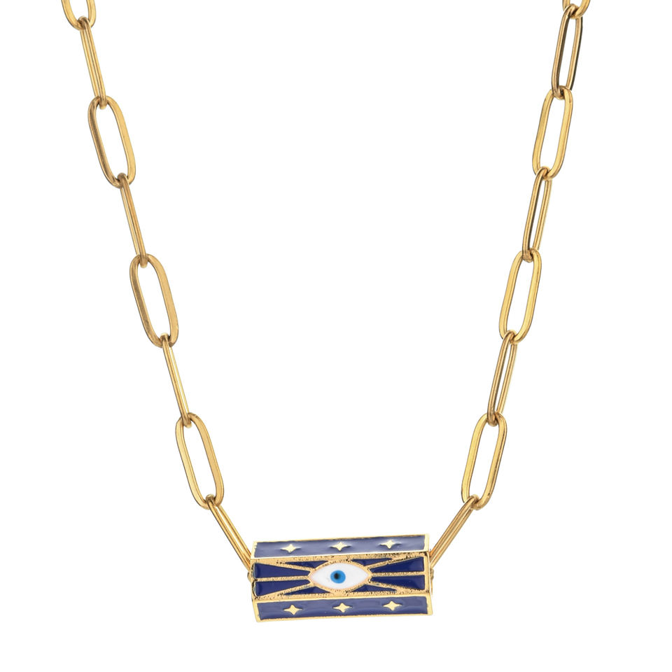 Boho Clip Necklace for Women Stainless Steel Chain Gold Evil Eye Pendant Necklaces Lucky Aesthetic Turkish Jewelry Femme