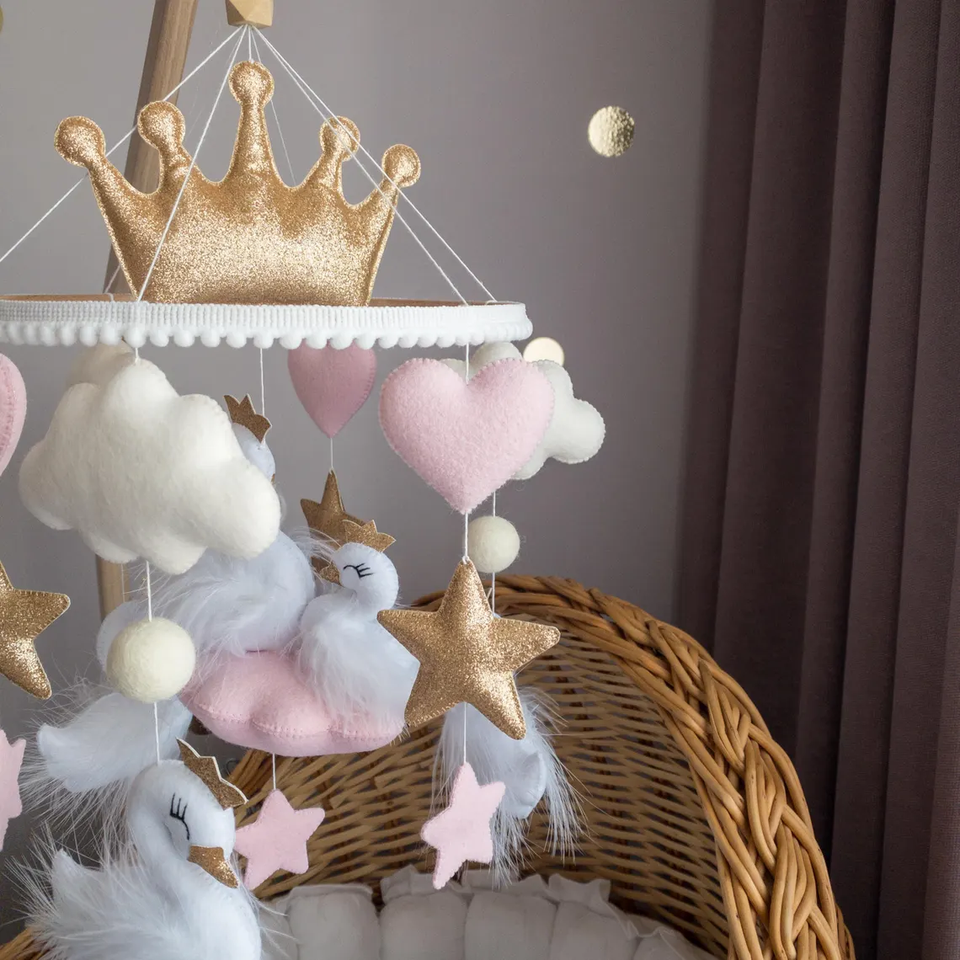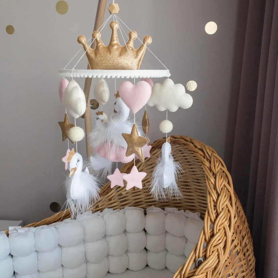 Boho letto personalizzato musicale principessa ragazza appeso accessori regalo feltro animale vivaio bambino mobile per culla