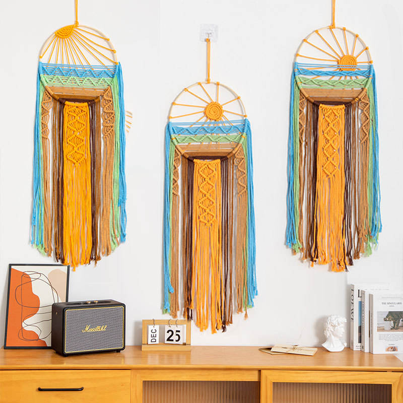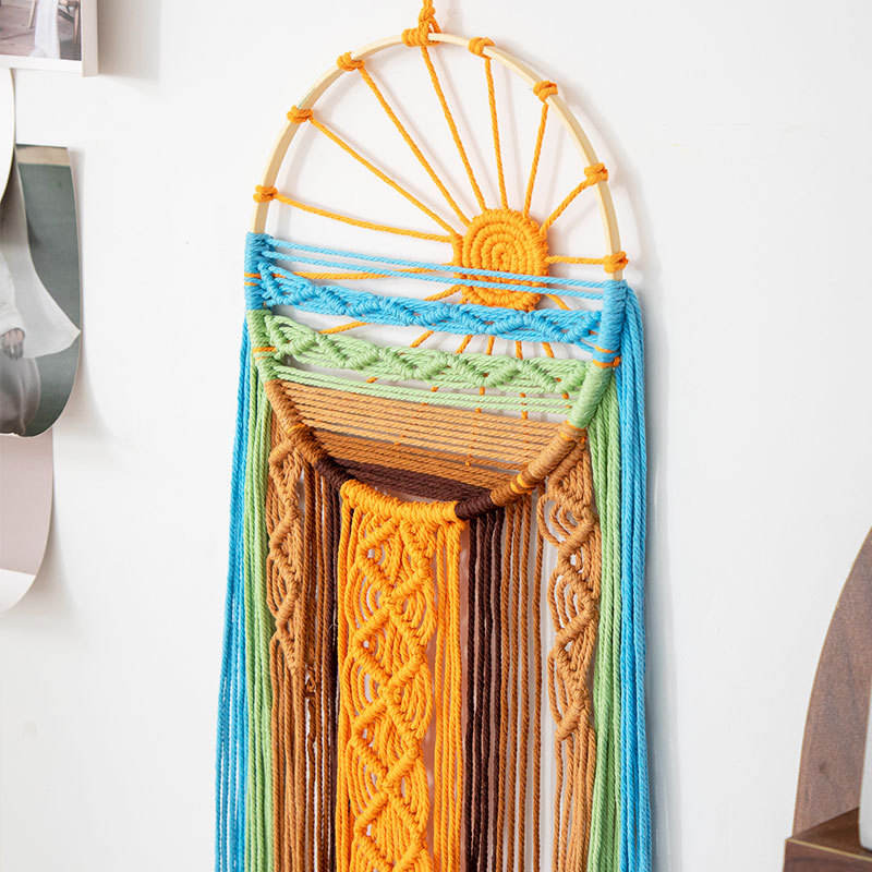 Arte Murale Boho in Macramè con Motivo Alba e Tramonto, Acchiappasogni, Decorazione da Parete per Camera da Letto e Soggiorno 25*70cm