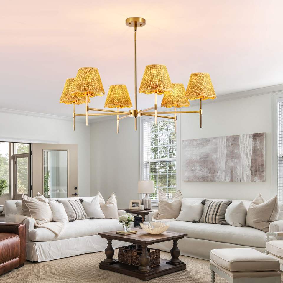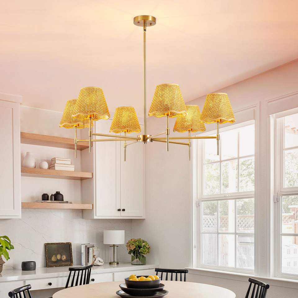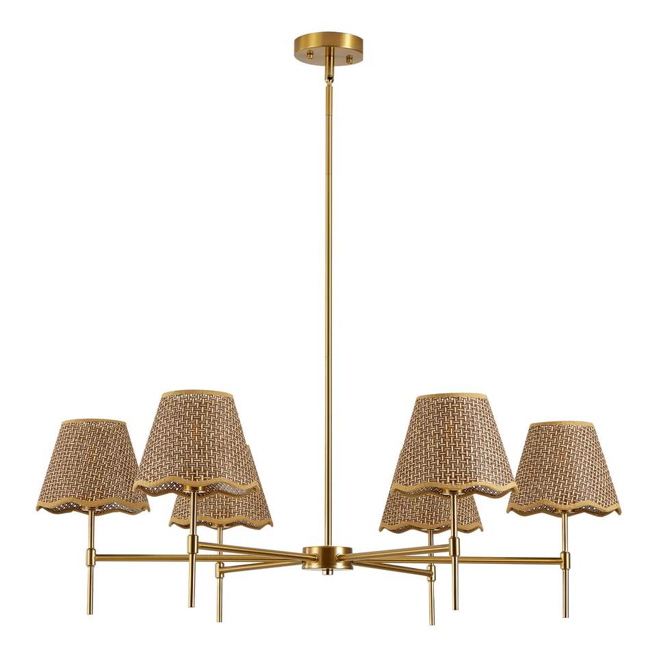 Lampadario Boho in Rattan a 6 Luci, Lampada a Sospensione Rustica Industriale, Grande Illuminazione Regolabile per Isola Cucina D