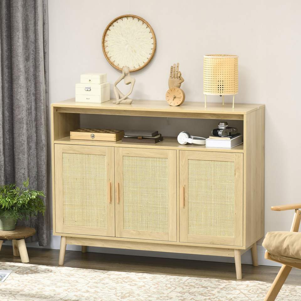 Boho Rattan Sideboard Buffet Cabinet Natural Finish for Dining Living Room Kitchen Storage