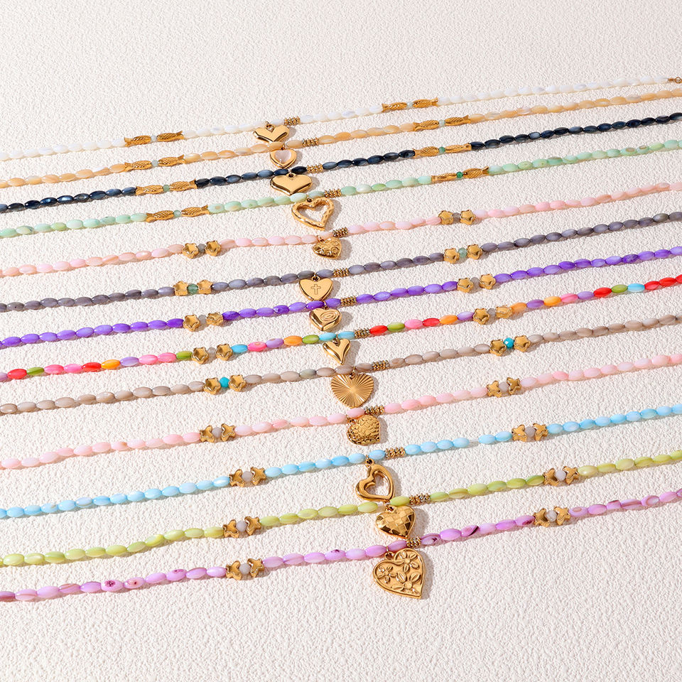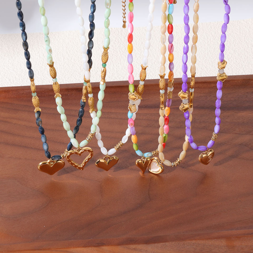 Collana girocollo con ciondolo a cuore gonfio in conchiglia naturale colorata, stile boho chic, perfetta come regalo per l'estate, la spiaggia e l'uso quotidiano.