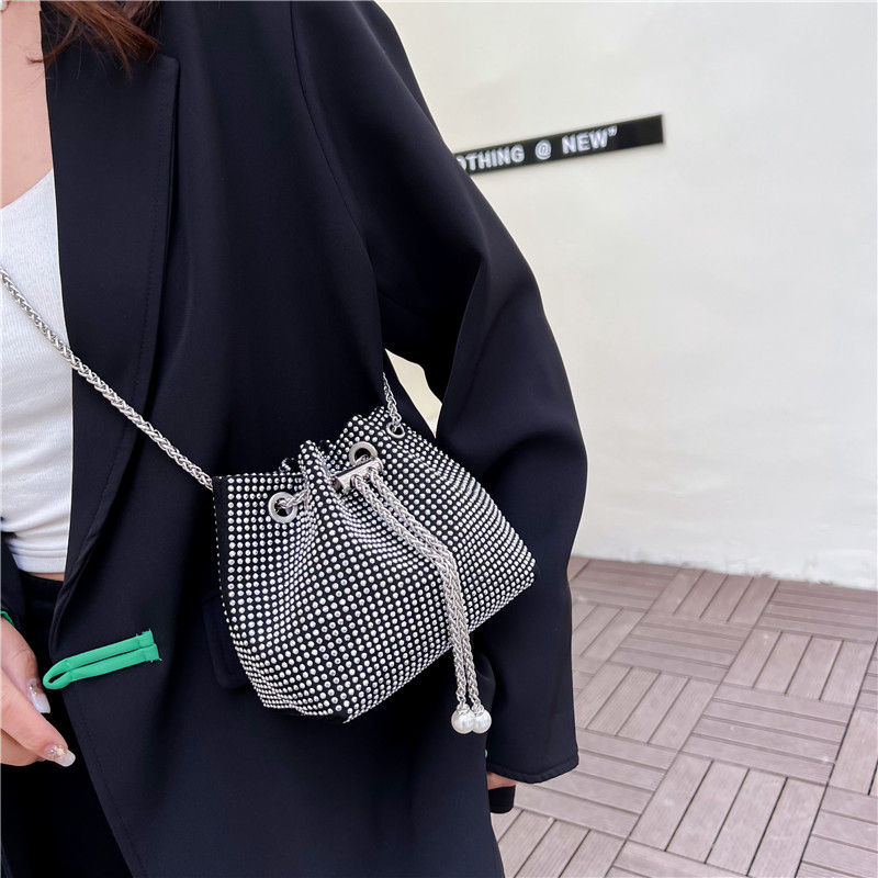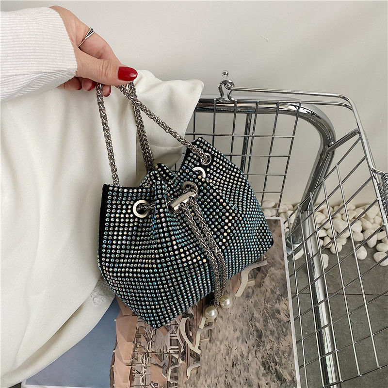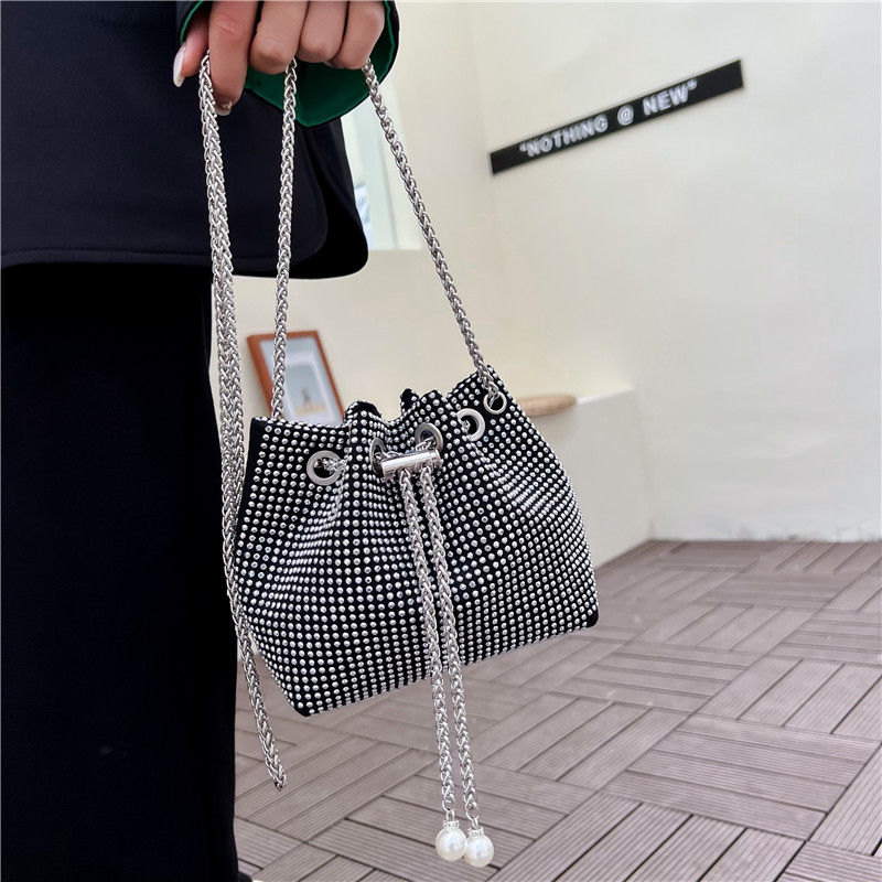 Bolat Nuova Borsa a Tracolla Trendy per Ragazze con Diamanti, Morbida in PU con Catena, Decorazione a Borchie, Borsa a Spalla alla Moda 17X13X9cm