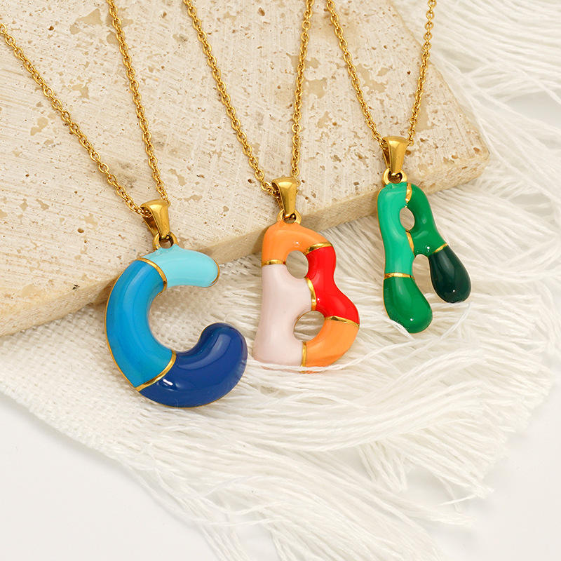 Grassetto oro placcato 18K collana pendente iniziale in acciaio inossidabile con unico Design a bolle smaltate nuovi gioielli personalizzati alla moda
