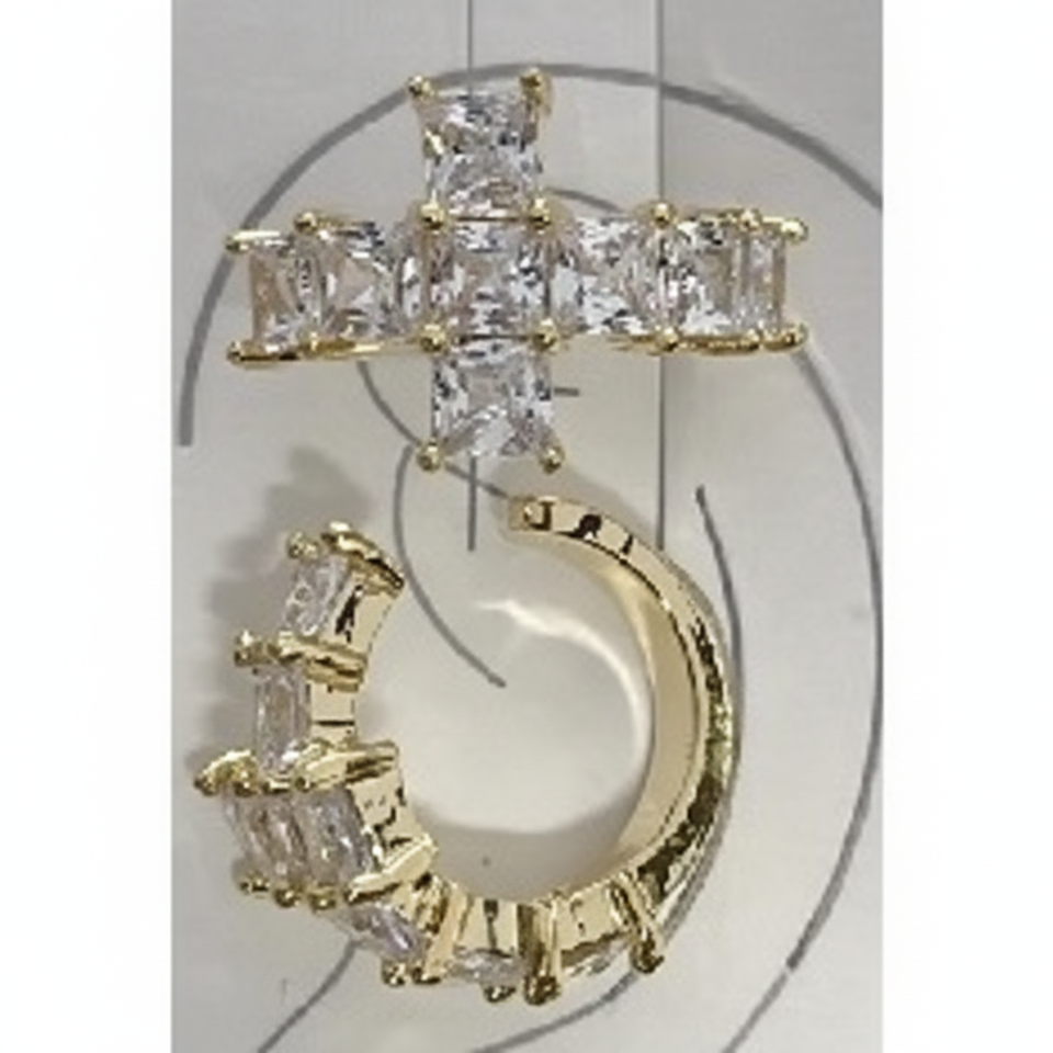 Bold Contemporary Clip-On Earrings Geometric Gold-Plated Brass with Diamond and Pearl Trendy Feather Design Chic Fashion Move