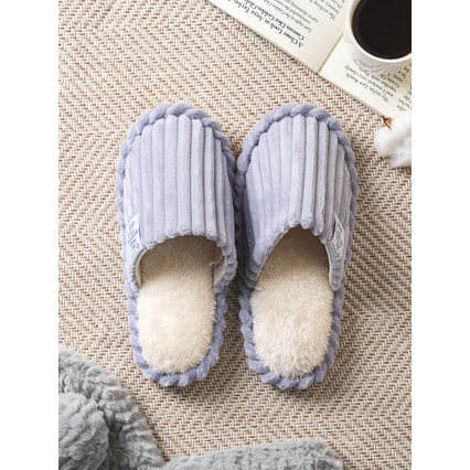 Bold Corduroy Purple Home Slippers 230-250 mm Label for Living Room Story