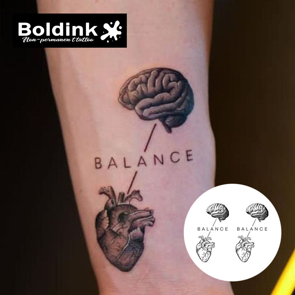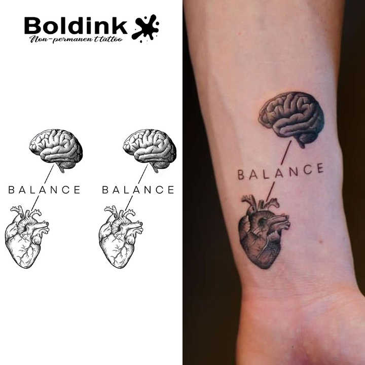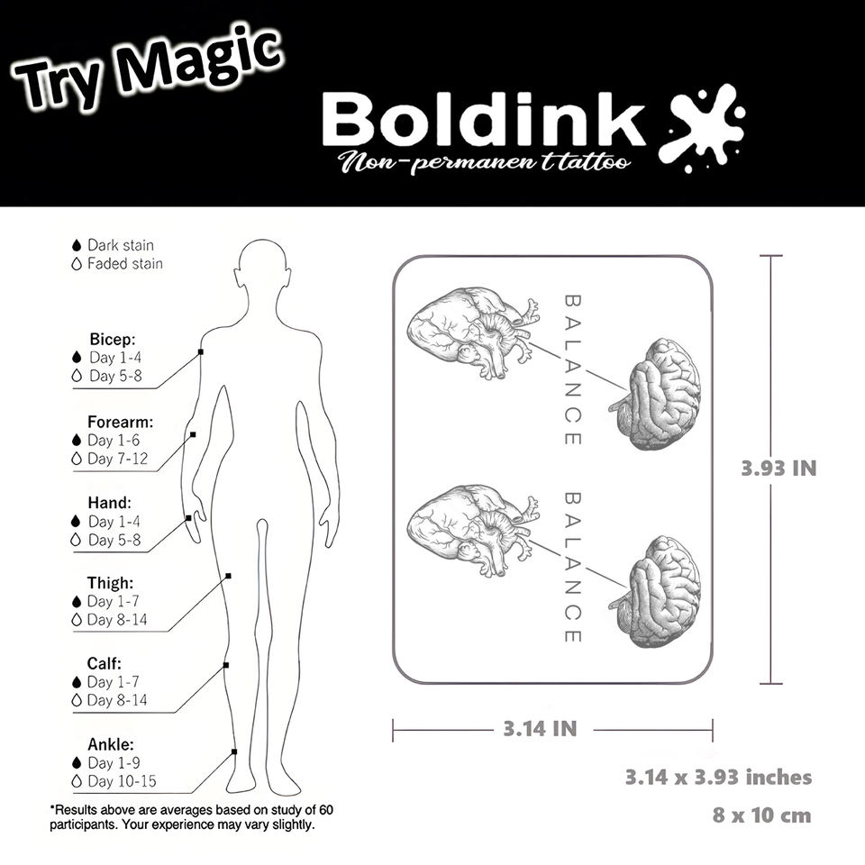 Tatuaggio Semipermanente Impermeabile Personalizzato Boldink con Scritte Estetiche Anatomiche a Tema Cuore, Cervello, Equilibrio, Braccio, Avambraccio e Polso