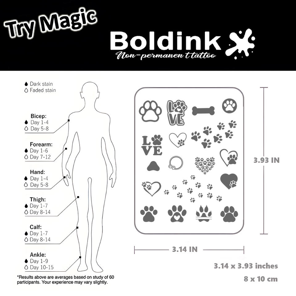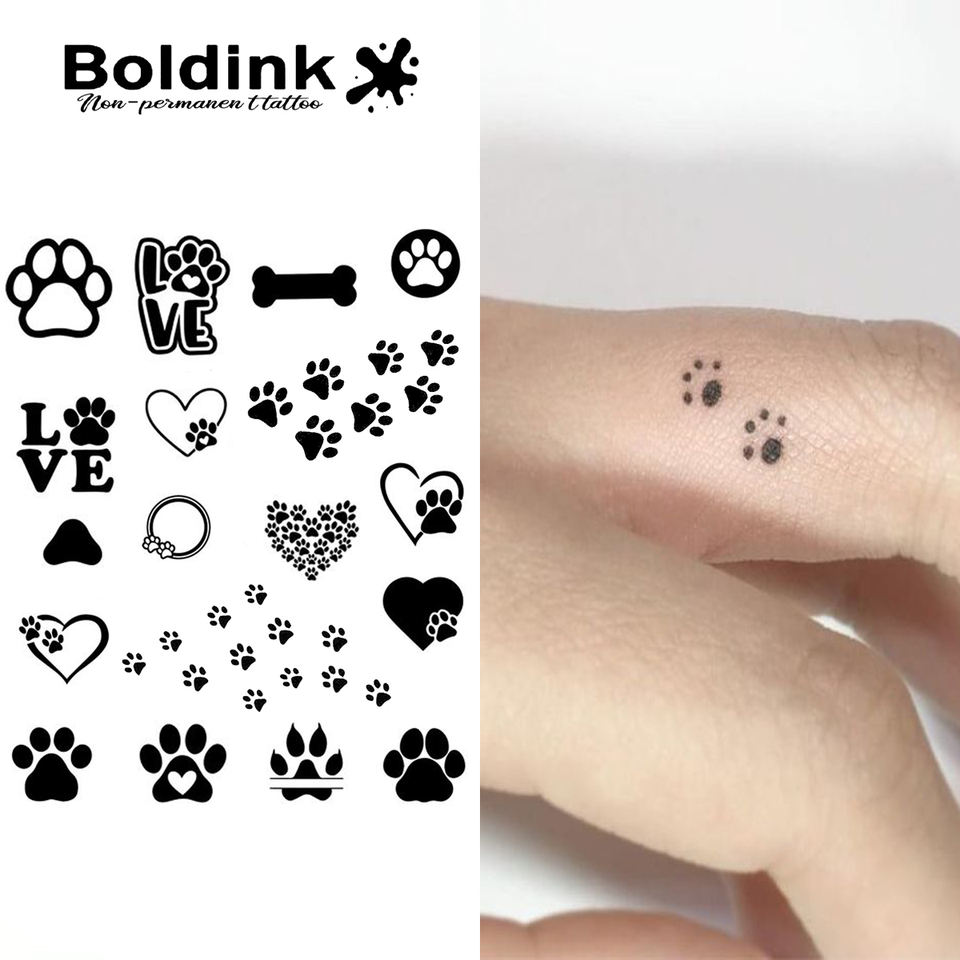Adesivi per Tatuaggi Semi-Permanenti Impermeabili Boldink Personalizzati con Stampa di Zampe di Cuccioli, Ossa e Cuori, Sexy, per Dita e Articolazioni