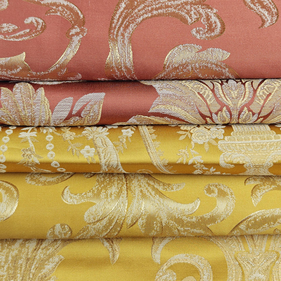 Tessuto Broccato in Seta Damascata M&Y Royal Oro e Bianco, 280cm, per Tovaglie e Tende Damascate, Decorazione Casa