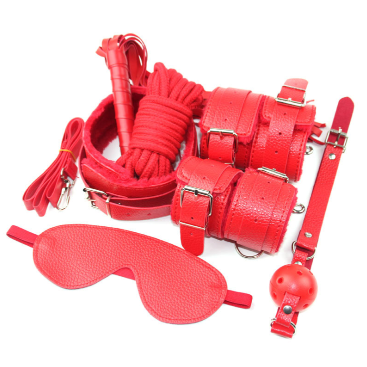 Handcuffs, Collar, Rope, Blindfold, WhipIncluded Components
