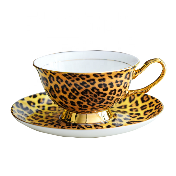 Bone china vintage leopard tazza da tè e piattino set di tazze da caffè in porcellana di lusso piatto con il tuo logo