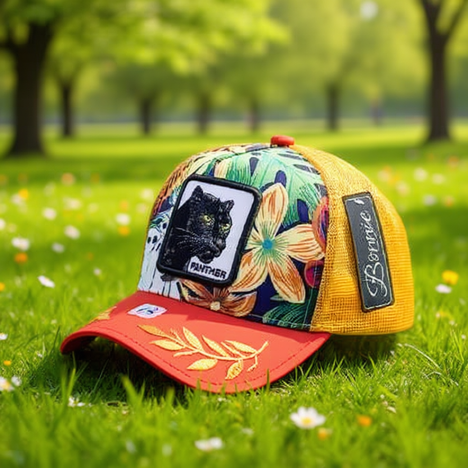 Bonne Panther Embroidered Trucker Hat 6-Panel Mesh Adjustable Breathable Spring Summer Casual Fashion Hat