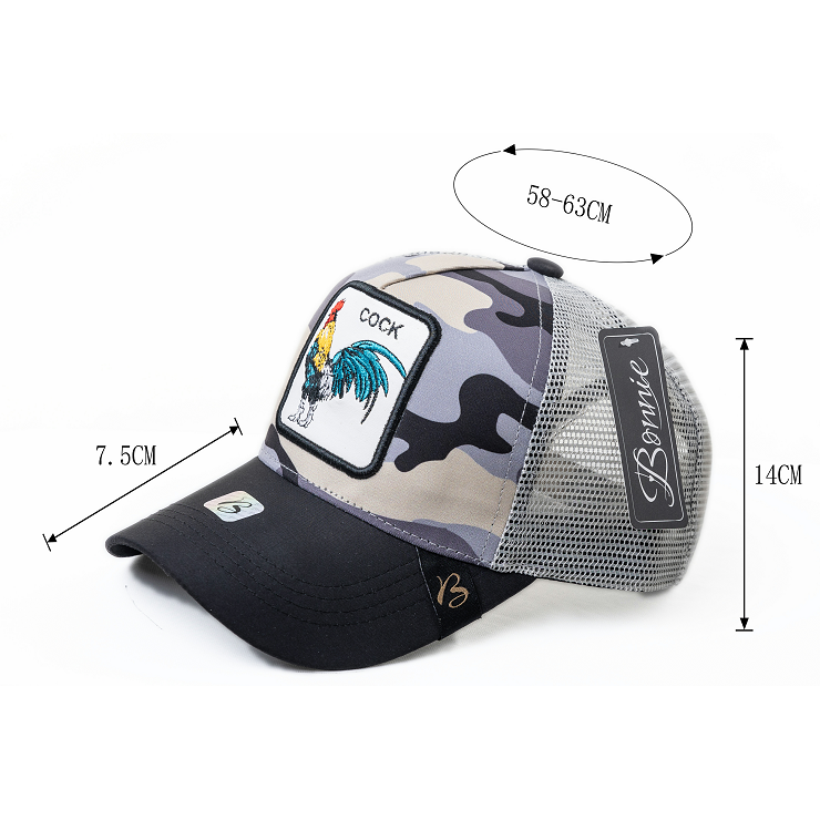 Cappello Trucker Bonnie con Ricamo, Tessuto a Rete, 6 Pannelli, Unisex, Casual, Primavera-Estate, Traspirante, Impermeabile, per Adulti