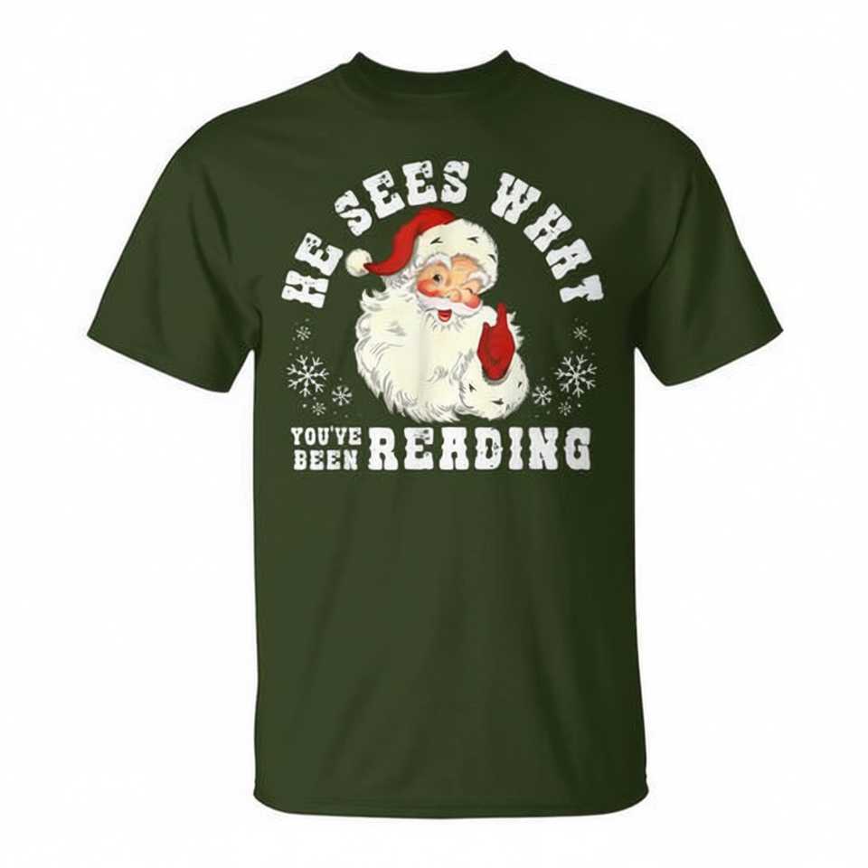 Bookish Christmas Lui vede ciò che stavi leggendo Maglietta di Babbo Natale