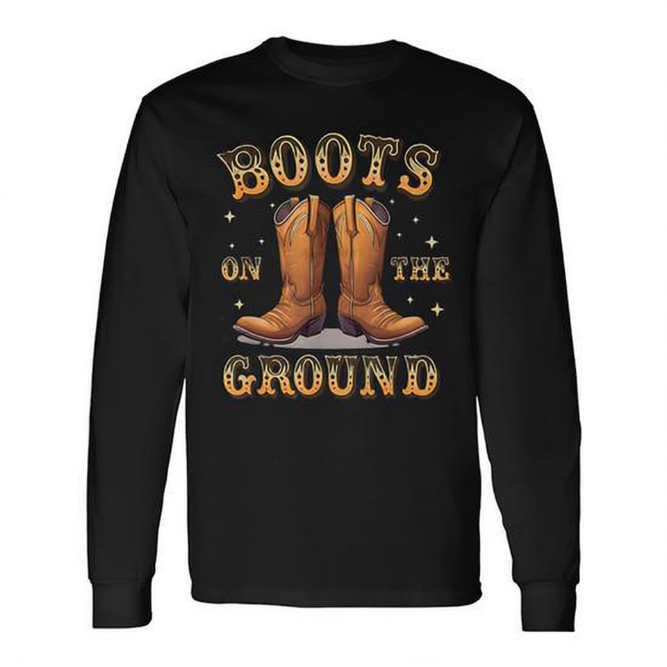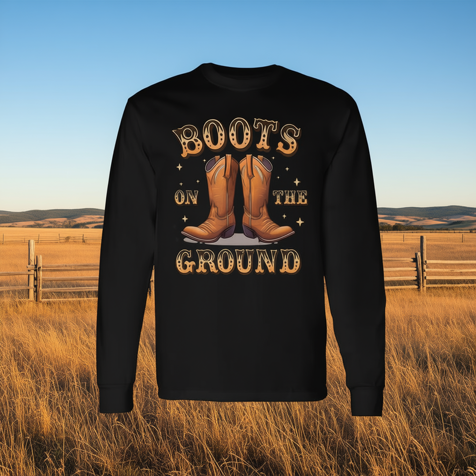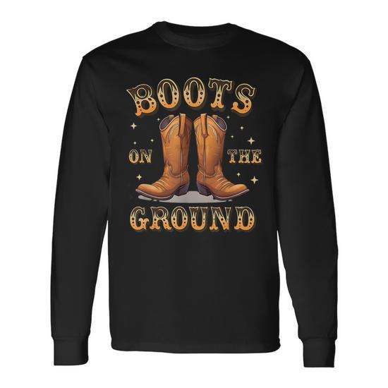 Boots On The Ground Long Sleeve T-Shirt Country Western Design
