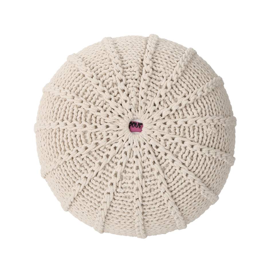 Bordeaux Knitted Cotton Round Pouf in Beige Color