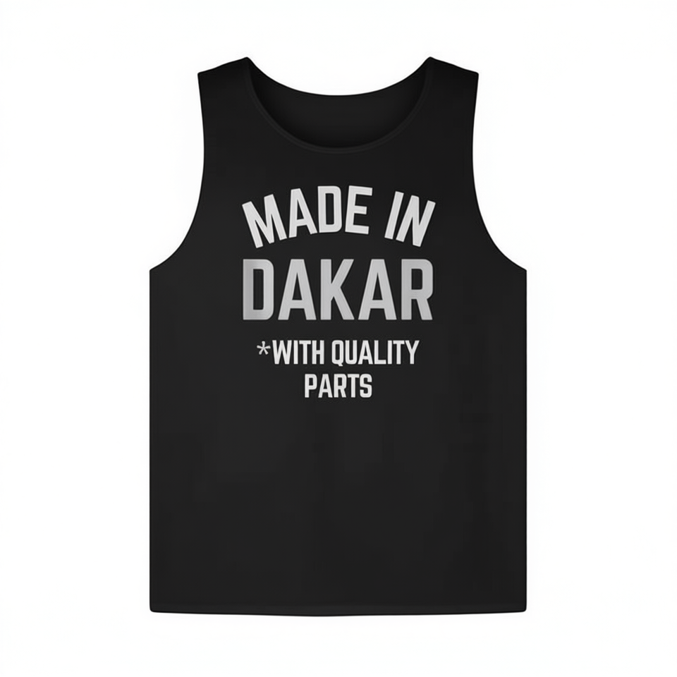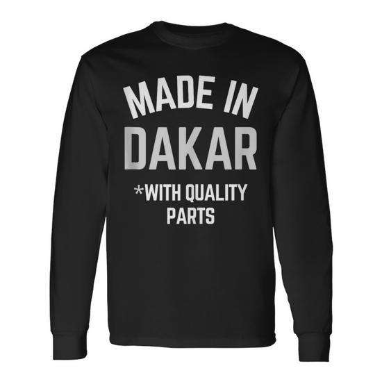 Maglietta a maniche lunghe con slogan 'Born in Dakar' realizzata a Dakar, abbigliamento promozionale