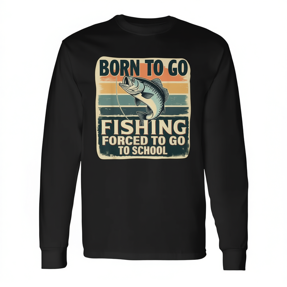 Maglietta a Maniche Lunghe 'Born to Go Fishing' per Giovani e Bambini, Articolo Promozionale per Bambini in Età Scolare