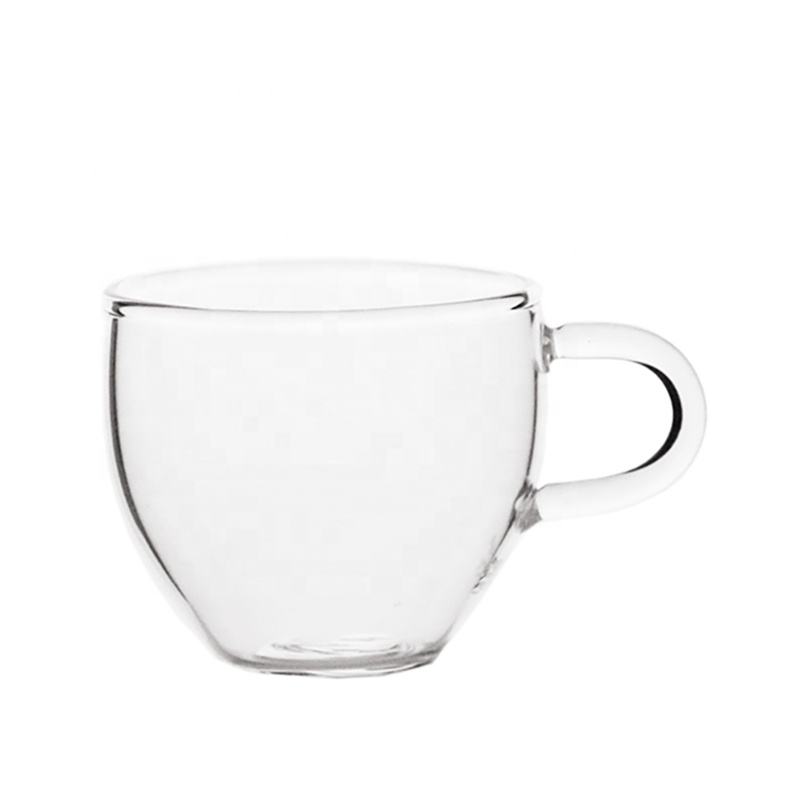 Tazza da Caffè in Vetro Borosilicato Trasparente con Piattino in Vetro Resistente al Calore