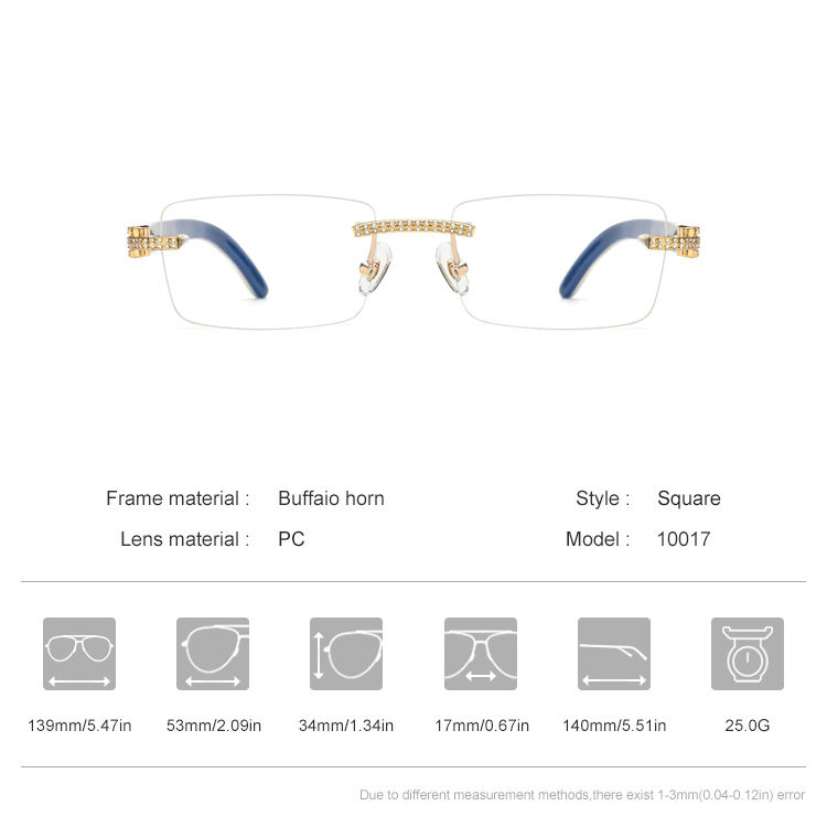 Borregls Buffalo Horn Glasses Men Luxury Brand Designer Square Buffs Eyeglasses Frames Diamonds Women Optical Eyewear 10070