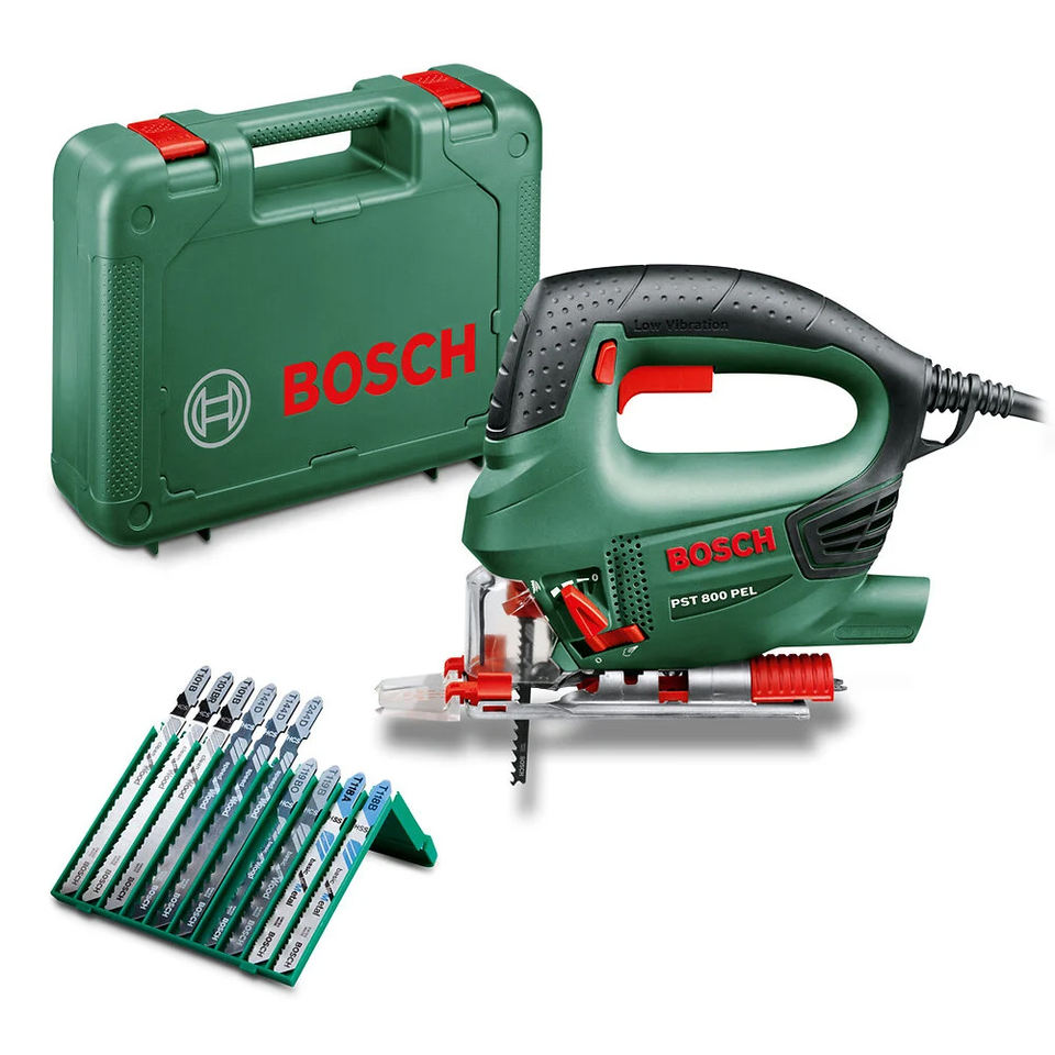 Bosch PST 800 PEL Oscillating Jigsaw with 10 Blades Set 06033A0101 for Wood Sawing Made in Italy