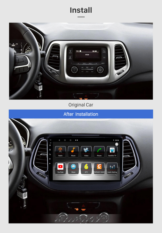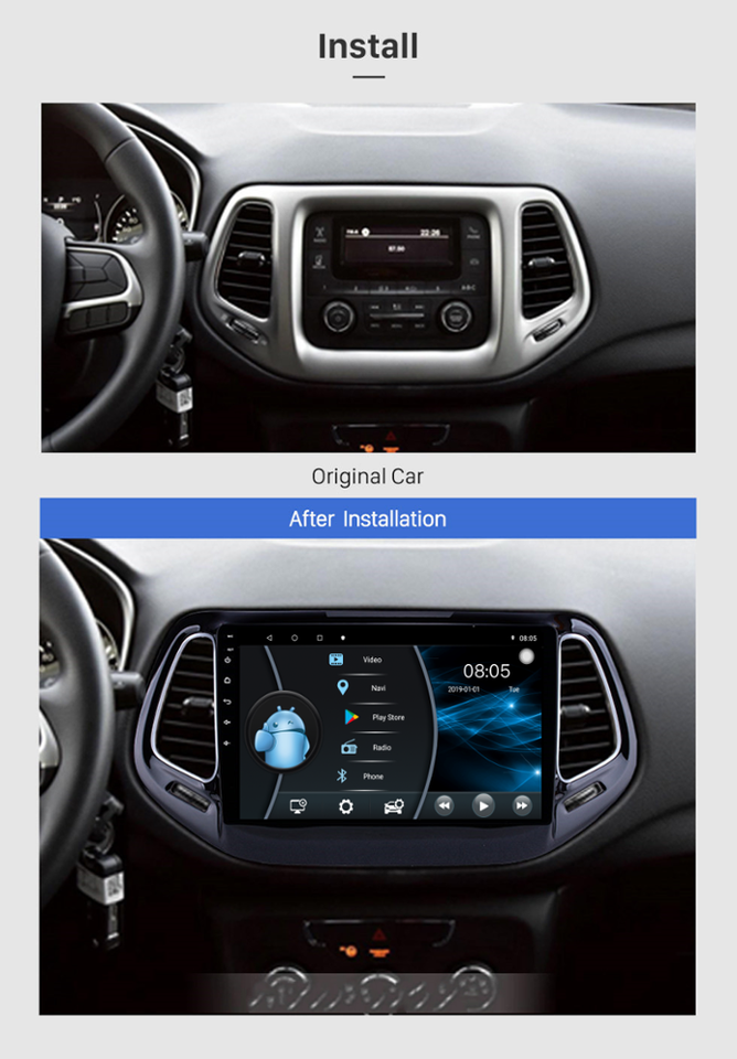 Monitor per Auto Bosstar per Jeep Compass 2017 2018 Autoradio Android 10 Lettore Multimediale Audio Stereo Navigazione GPS per Auto 2+32g