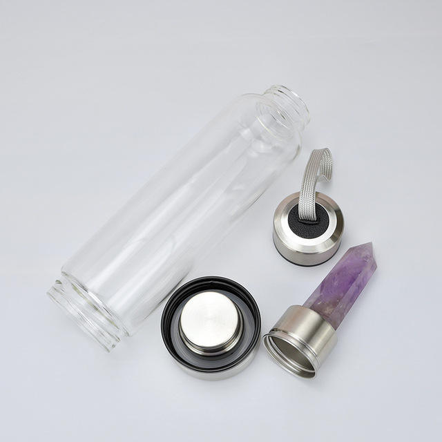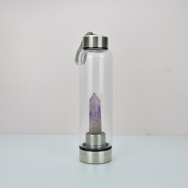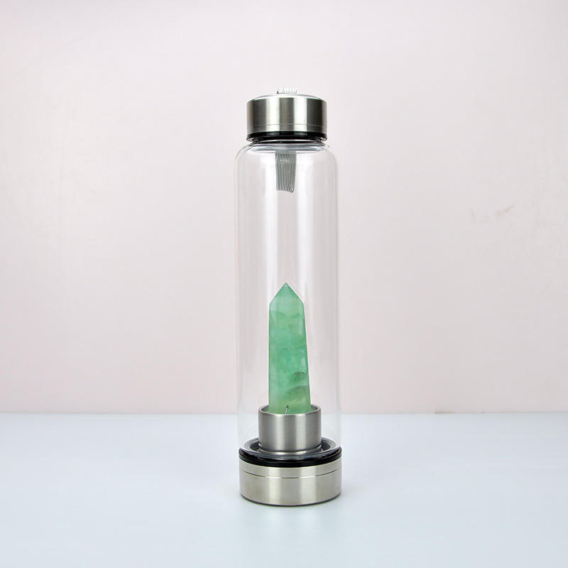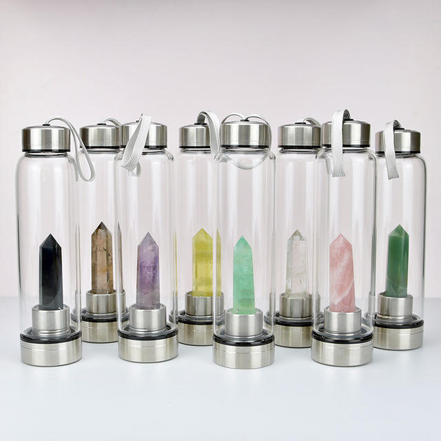 Botella de agua potabile de cristal naturale Botella de agua de elixir de cristal de cuarzo curativo