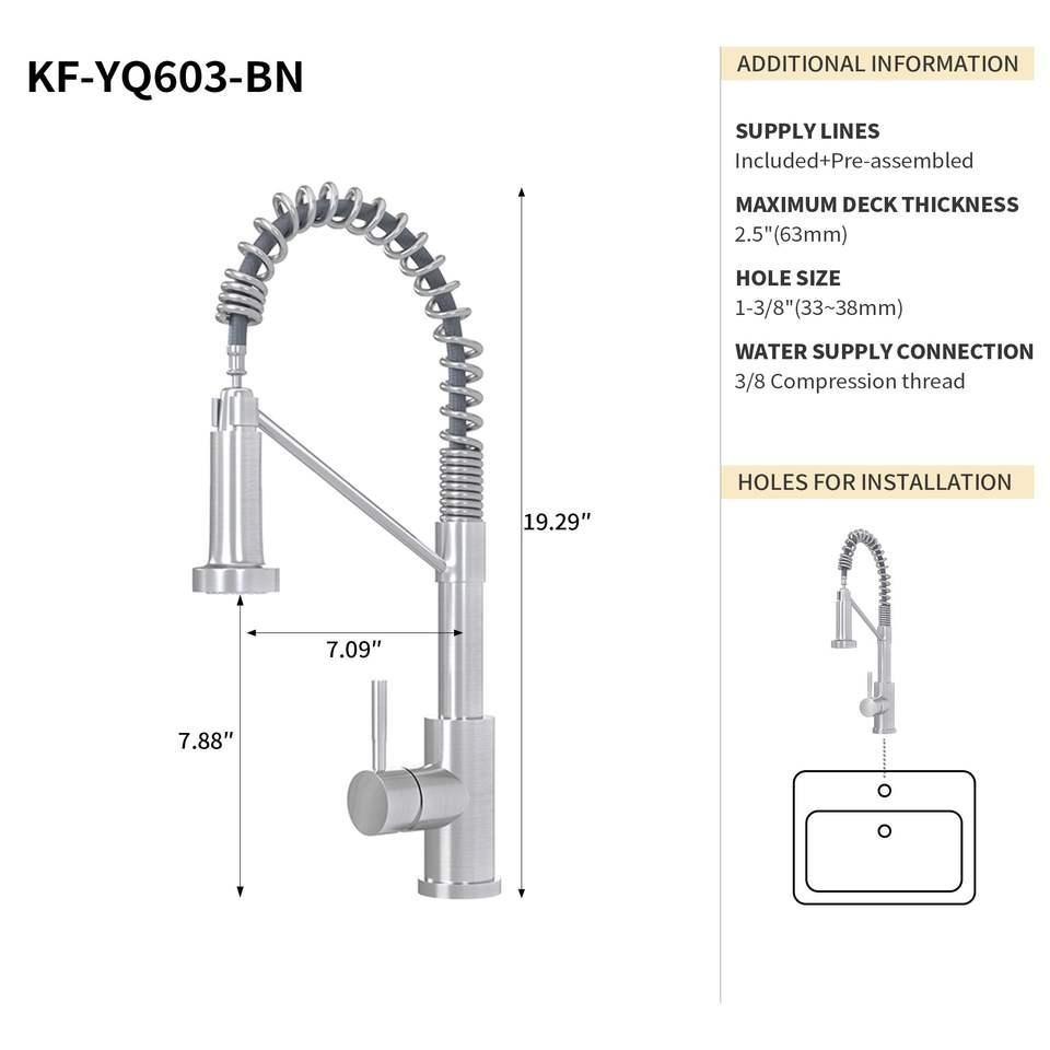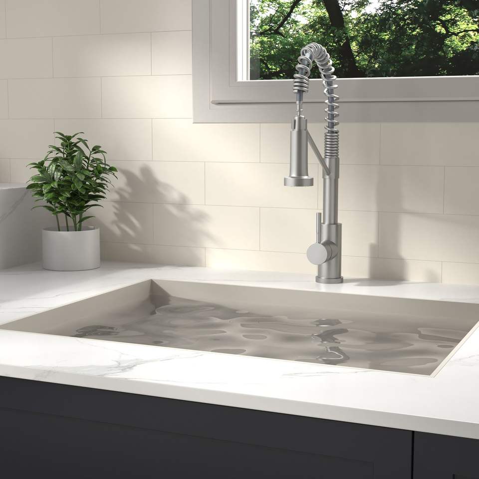 Rubinetto da cucina Bothwa Home da 19 pollici con maniglia singola, certificato CUPC, finitura nichel spazzolato