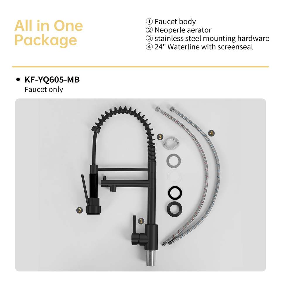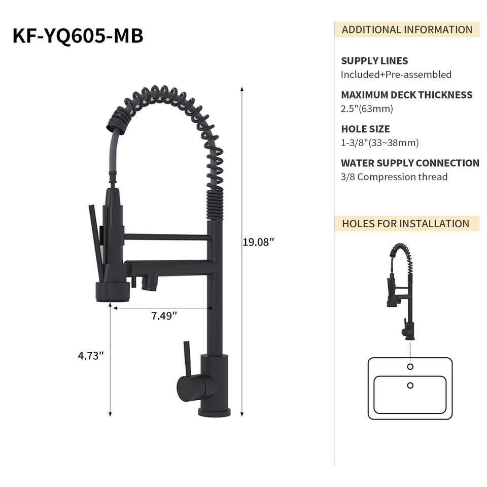 Rubinetto da cucina Bothwa Home da 19 pollici con maniglia singola, certificato CUPC, finitura nero opaco