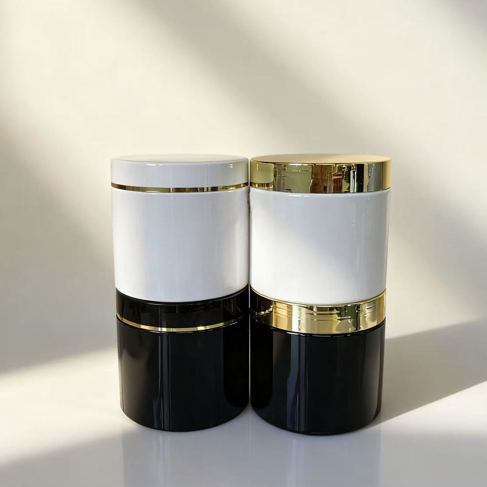 Bottle Pet Jar White Black Amber Factory Direct Sale Plastic Wide Mouth Cosmetic Plastic with Gold Lids for Cosmetic Container