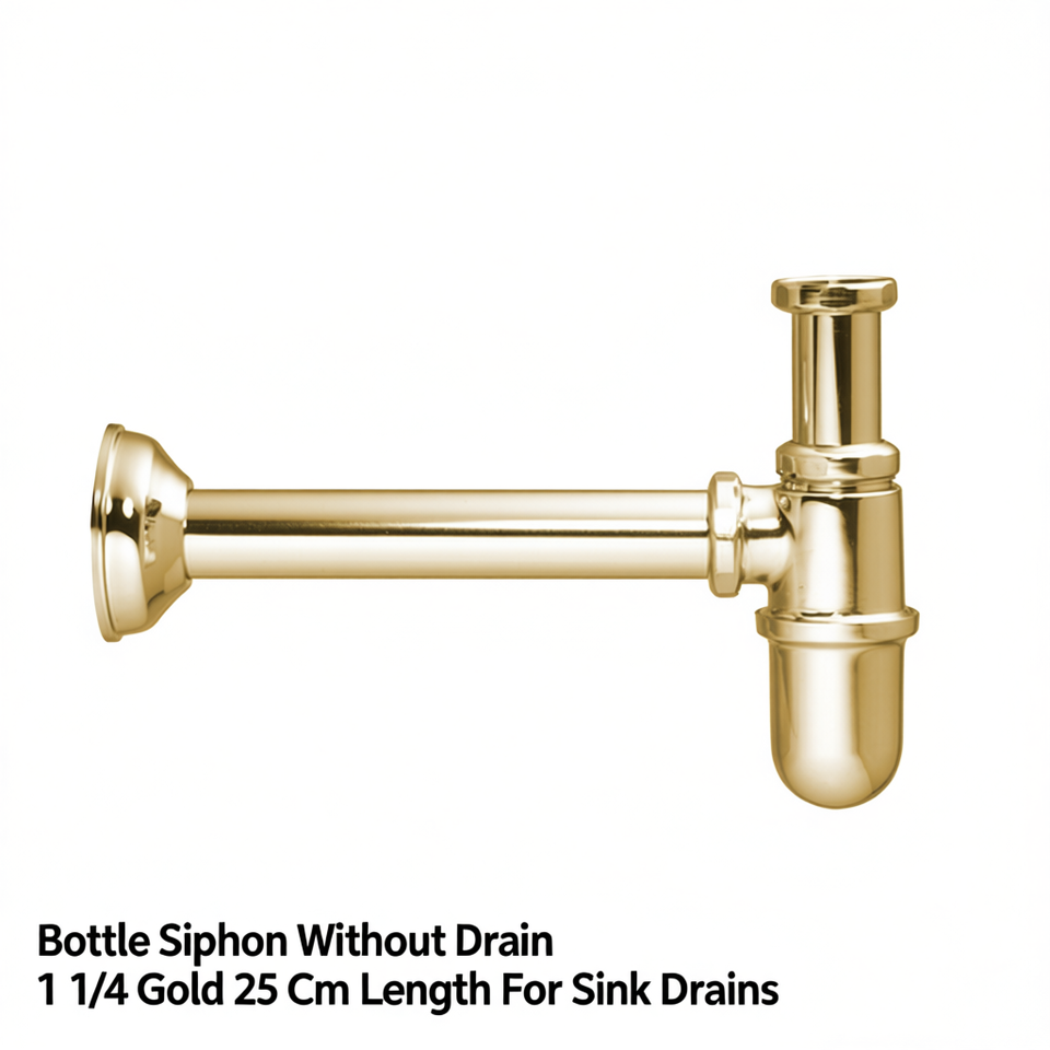 Sifone per Bottiglia Senza Scarico 1 1/4 Oro Lunghezza 25 Cm per Scarichi Lavandino