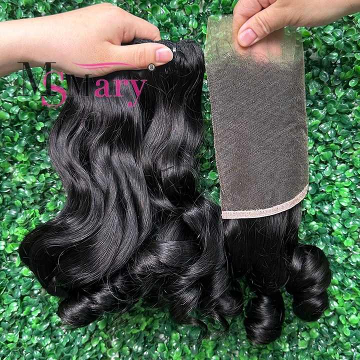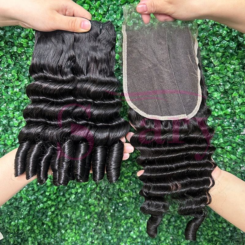 Ciocche di Capelli Umani Funmi SDD Ricci e Voluminosi, 100% Capelli Umani Vietnamiti Grezzi, Fornitore di Extension con Chiusura HD e Frontale in Pizzo