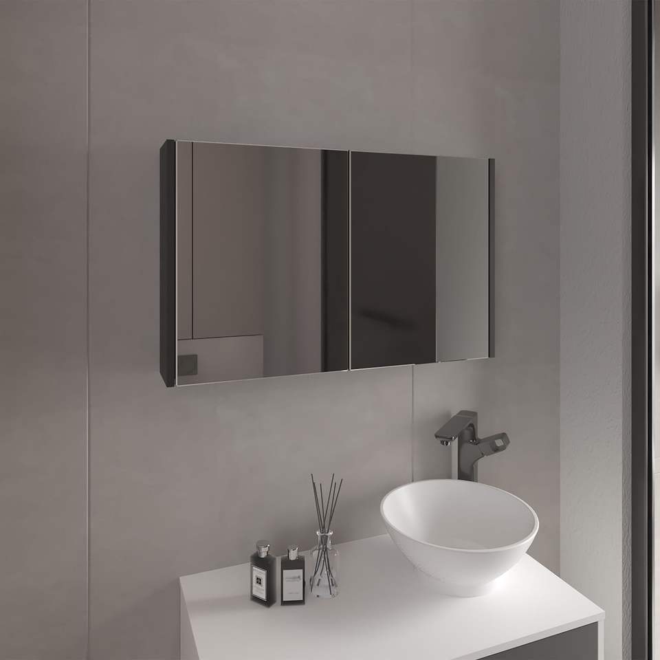 Armadietto a Specchio Doppio con Ante, 50 cm (A) x 80 cm (L), Nero, con Tre Ripiani Interni, per Bagno e Cucina