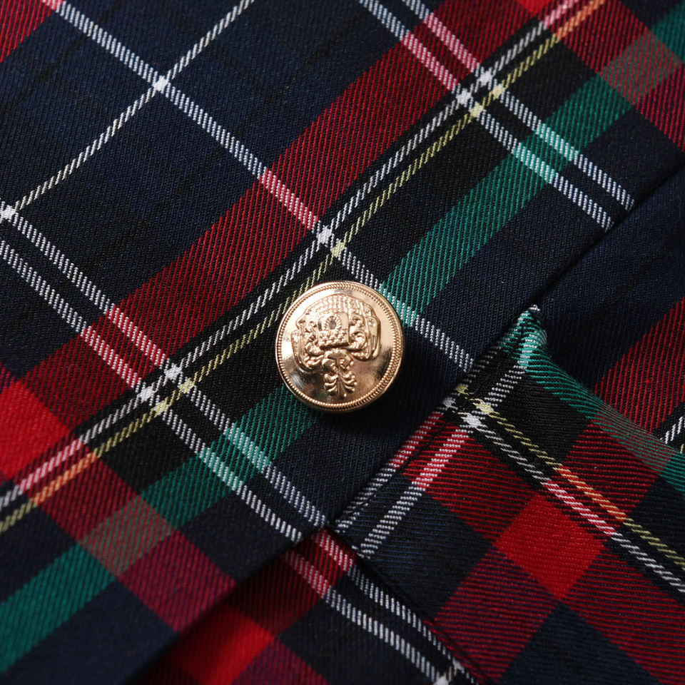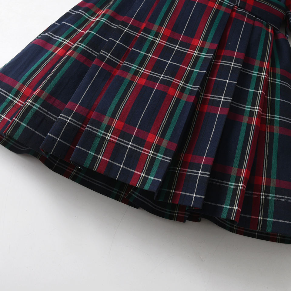 Boutique Christmas Style Girls Dress Summer Red Green Tartan Pattern Peter Pan Collar Luxury Girl Dress With High Quality Button