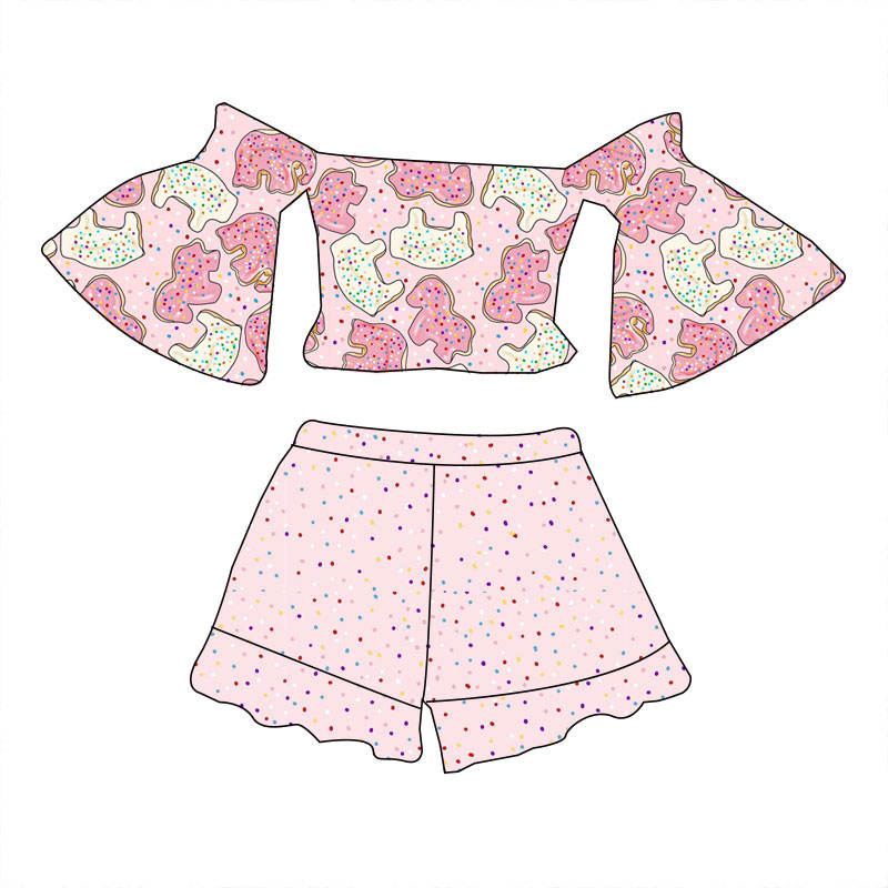 Abito da ragazza Boutique top con spalle scoperte maniche svasate pantaloncini in pizzo tessuto morbido motivo personalizzato