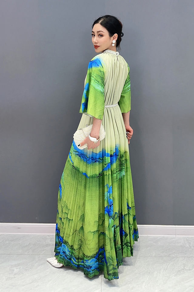 Abiti da Donna Eleganti e alla Moda con Stampa Estiva 2024, Orlo Ampio e Inserti in Diamanti, Vendita all'Ingrosso